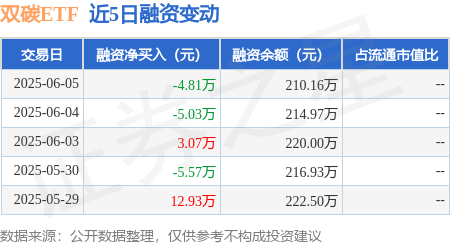 本站消息,6月5日,双碳ETF(561190)融资买入6.06万元,融资偿还10.87万元,融资净卖出4.81万元,融资余额210.16万元。